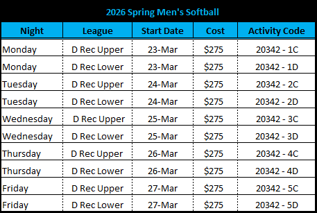 - Forfeits after 4:00 pm (day of), or No Call, No Shows will be tracked, and the team captain will be responsible for paying any reinstatement fee prior to the team's next game.