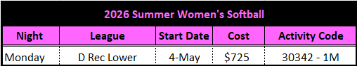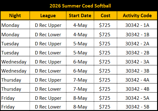 Registration for Summer Session opens MARCH 9TH! Check out the league options below.